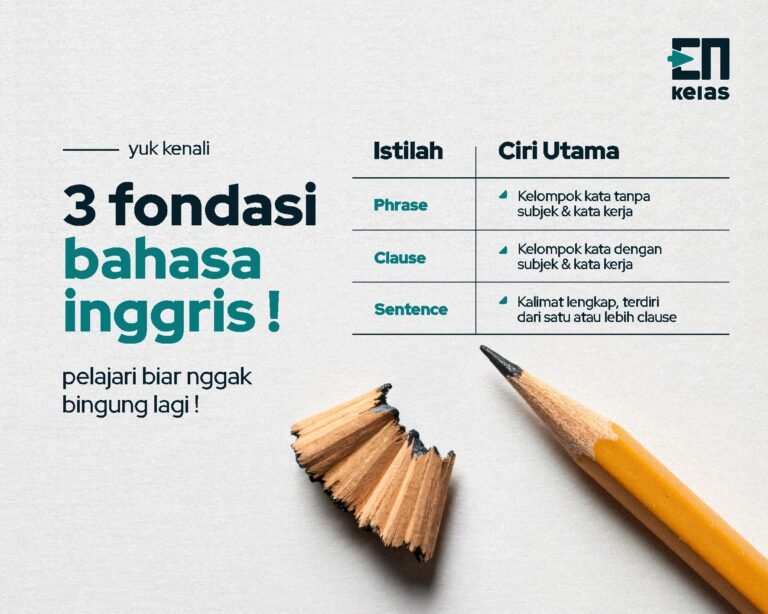 EN Kelas – Belajar Bahasa Inggris ibarat membangun sebuah rumah. Kata-kata adalah batu bata, susunan kata adalah dinding, dan kalimat adalah bangunan utuh yang bisa dihuni. Untuk bisa membangun rumah bahasa yang kokoh, kita perlu mengenal tiga unsur dasar: phrase, clause, dan sentence.